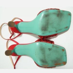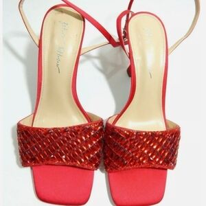 Item: Women's Britt Strappy High Heel Sandals Square Toe Rhinestone Red