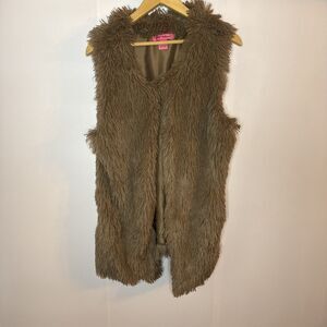 Betsey Johnson Brown Faux Fur Vest Womens M Penny lane Festival Mob Wife