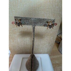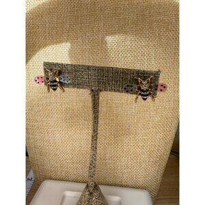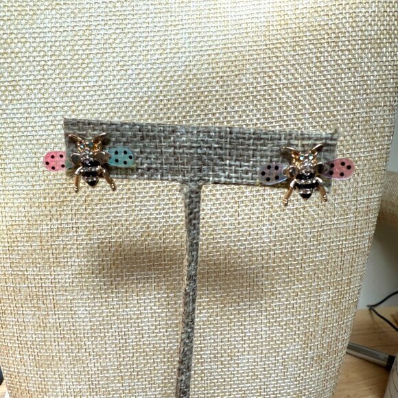 Betsey Johnson Bumble Bee Stud Earrings With Pink & Blue Polka Dot Wings