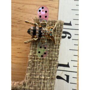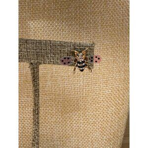 These whimsical bumble bee earrings by Betsey Johnson feature pink and blue polka dot wings with sparkling rhinestone accents. Lightweight and quirky design.
