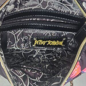 This Betsey Johnson crossbody bag features a vibrant butterfly pattern, offering a bold and stylish accessory choice. The bag is designed with multiple compartments, providing ample storage for personal belongings. Its durable construction and eye-catching design make it a standout piece for everyday use or special occasions.
