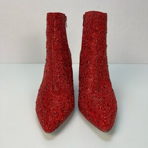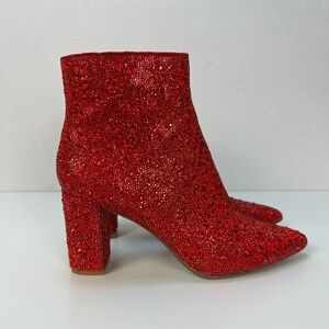 Betsey Johnson Cady Boots Red Rhinestones Sparkly Side Zip Bootie Swifties 9 EUC