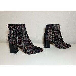 Betsey Johnson Cait Multi Tweed Pointed Toe Ankle Boots City Chunky Heel 7.5