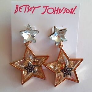 Betsey Johnson Celestial Star Statement Crystal Drop Earrings New