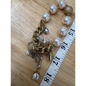 Betsey Johnson Charm Bracelet Stretch Gold/Pearl With Rhinestones For Craft/Harv