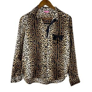 Betsey Johnson Cheetah Print Brown Silky Shirt Blouse Size Small Women’s