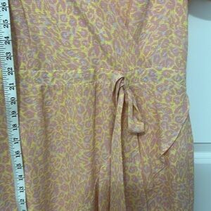 Betsey Johnson Cheetah Print Faux Wrap Dress size 12 pink & yellow lined party