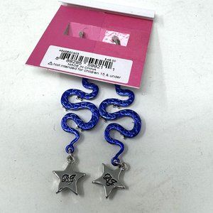 Betsey Johnson Cobalt Blue Rhinestone Shake & Star Earrings Leaver backs Silver