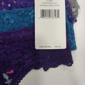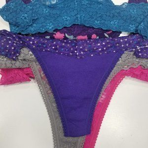 Betsey Johnson Cotton & Lace Thong Set Underwear 5 Pack