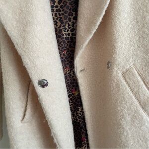 Betsey Johnson Cream Wool Blend Faux Fur Teddy Coat Size Large Leopard Lining