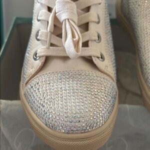Betsey Johnson Cream and Silver Sparkle Sneakers