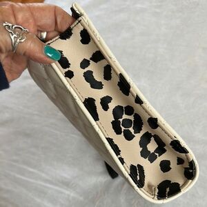 Betsey Johnson Cream Quilted Heart Clutch Cheetah Print