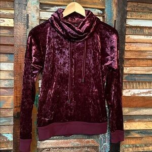 Betsey Johnson performance collection pullover turtleneck in beautiful rich velvet burgundy/ deep purple color.