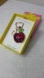 Betsey Johnson keychain charm featuring a pink apple design with sparkling stones. Includes a heart-shaped clasp and additional charm.