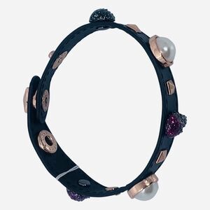 Looking for a statement piece that will turn heads and add a pop of color to your outfit? Look no further than the Betsey Johnson DUCHESS OF BETSEYVILLE Purple & green hombre Crystal Skull studs faux pearls Leather snap Bracelet!This stunning bracelet features a bold purple and green ombre design, accented with crystal skull studs and faux pearls for a touch of edgy glam.Made with high-quality leather and a convenient snap closure, this bracelet is both stylish and practical. Perfect for adding a touch of rocker-chic to your everyday look or for dressing up for a special occasion, this Betsey Johnson bracelet is sure to become a favorite in your jewelry collection. Don't miss out on this must-have accessory!