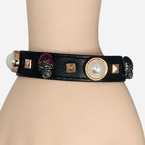Betsey Johnson Crystal Black Leather Skull Pearl Bracelet DUCHESS OF BETSEYVILLE