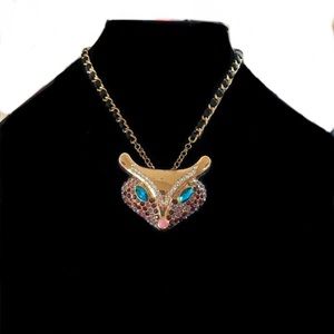 Large fox pendant from the Butterflies & Critters collection. Adorned with clear, lavender & deep burgundy/purple crystals. Gorgeous blue rhinestone eyes. Chain has black ribbon detail. The tag is not attached to the necklace