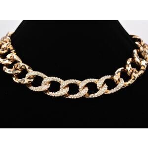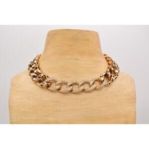 Betsey Johnson Crystal Leopard Necklace Chain Collar Gold Heavy Chunky BinAU