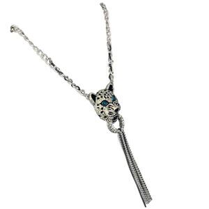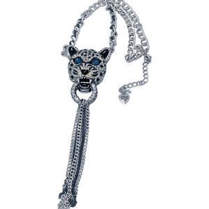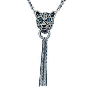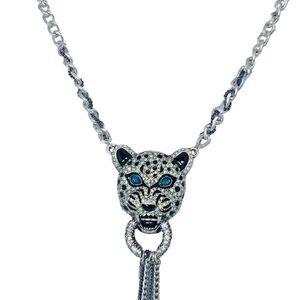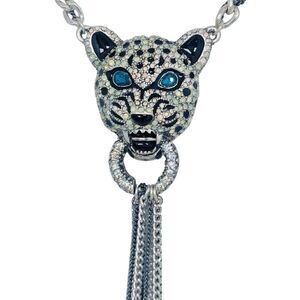Betsey Johnson Crystal Snow Leopard Door Knocker Necklace 19" WHITEOUT