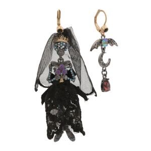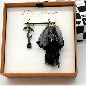 Betsey Johnson Dark Magic Mismatched Skeleton Skull Bride Earrings Halloween NEW