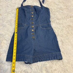Betsey Johnson Denim Shorts tie neck woman’s button up Romper size 6