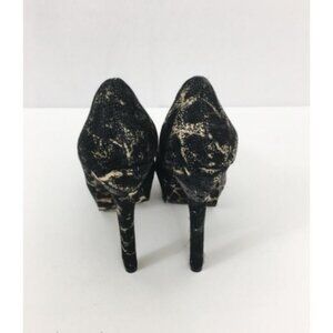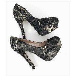 Betsey Johnson Divah Denim Multi 6 M Blue Gold Platform Heels. Some fraying at heel.