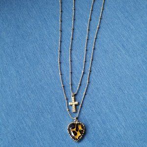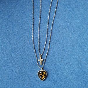 ♱🤎Betsey Johnson Double Chain Heart & Cross Necklace - EPC🤎♱