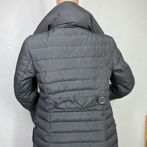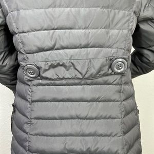 Betsey Johnson Down Jacket, Knee length double breasted button detailing XS Grey
