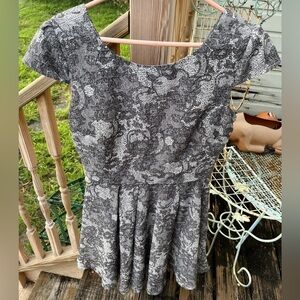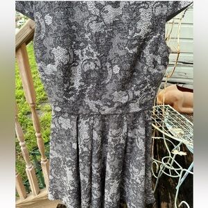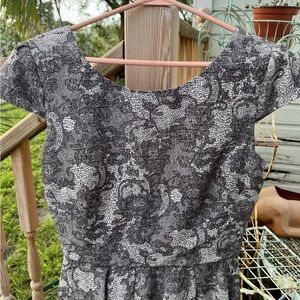 Betsey Johnson Dress Size 8 Black Floral Lace Fit Flare Short Sleeve Pink Label