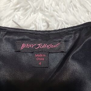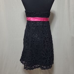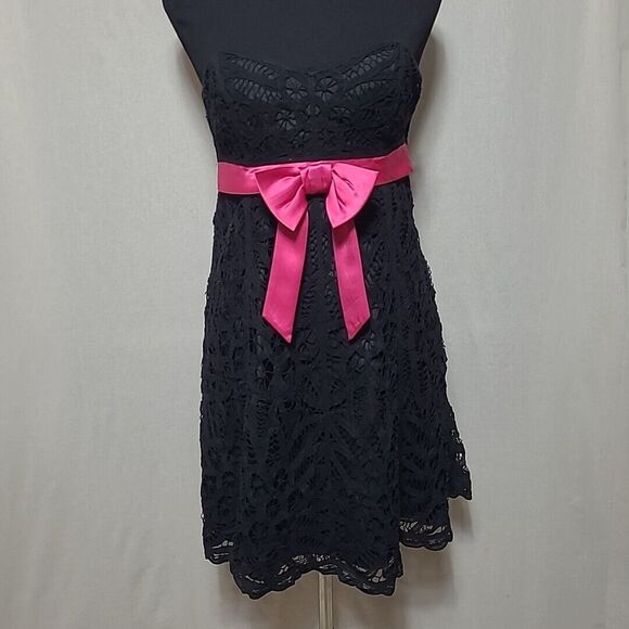 Betsey Johnson Dress Sz 4 Black Pink Fit & Flare Strapless Embroidered Lace