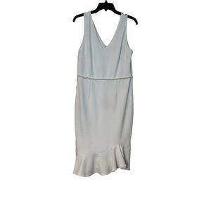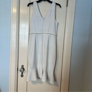 Betsey Johnson Dress White Crepe Flounce Hem V-Neck Pearl Trimmed Size 10
