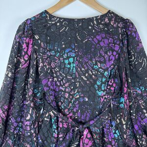 Betsey Johnson Dress Womens 4 Black Multicolor Animal Print Ruffle Bell Sleeve