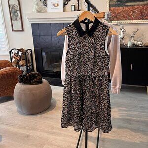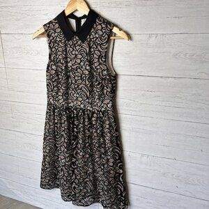Betsey Johnson Dress Womens SZ 2 Black and Tan Lace with Peter Pan Collar Pinup