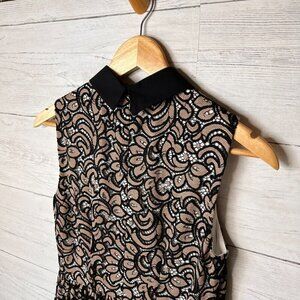 - Betsey Johnson Women's Black & Tan Lace Dress with Peter Pan Collar