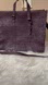 Stylish purple tote with embossed skull design. Features dual handles and detachable charm. Perfect for everyday use.