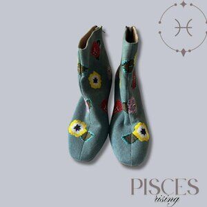 🌸 Betsey Johnson Embroidered Denim Ankle Boots – Size 8