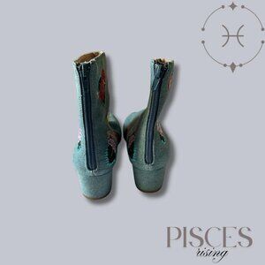 Betsey Johnson Embroidered Denim Ankle Boots – Size 8