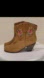 Western-Style Brown Ankle Boot with Embroidered Flowers