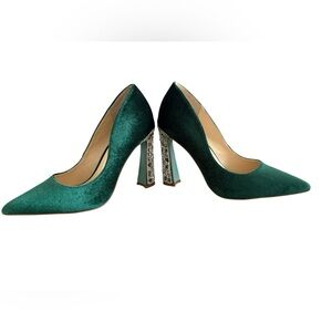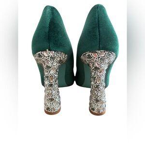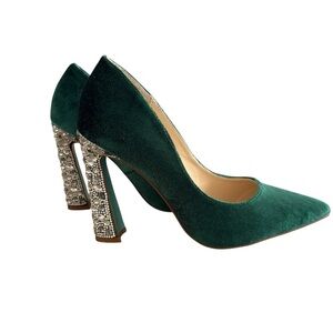Betsey Johnson Emerald Velvet Heels with Crystal Block