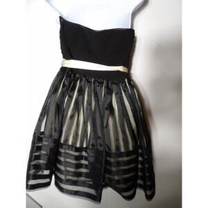 Betsey Johnson Evening Dress 6 Strapless Black Tulle Beige Sweetheart Tie Belt