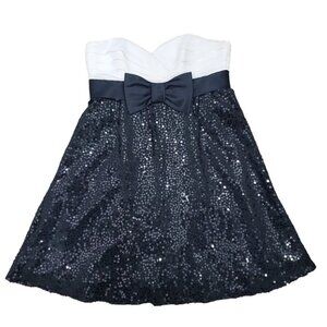 Betsey Johnson Evening Women's Y2K Black & White Silk Strapless Party Dress Sz 8