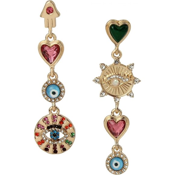 Betsey Johnson Evil Eye Linear Non-Matching Earrings