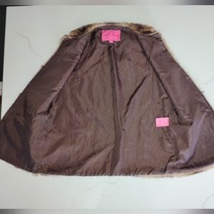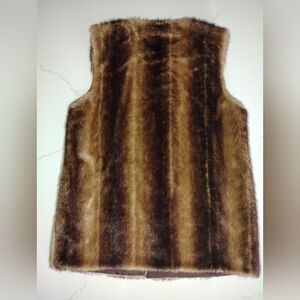 Luxurious faux fur vest. Perfect for layering. Adds warmth and style. Button closure.
