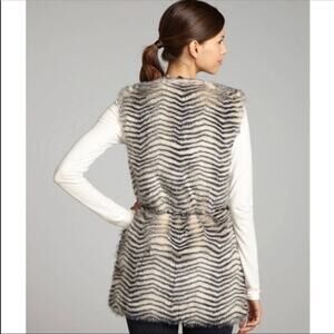 Betsey Johnson Faux Fur Vest Women’s XS Long Sleeveless Jacket Zebra Stripe Animal Print