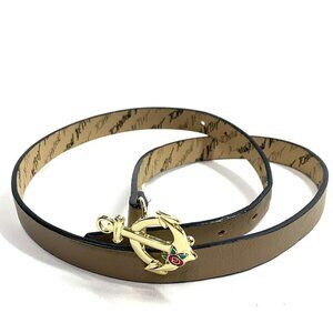 Betsey Johnson Faux Leather Belt With Anchor Rose Prong Clasp Tan/Gold Sz Small