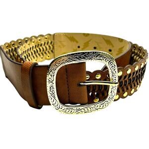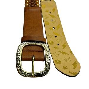 Betsey Johnson Faux Leather Gold Buckle Belt Sz S Western Boho Coastal Cowgirl