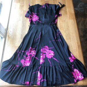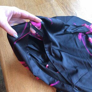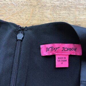 Betsey Johnson Black Pink Floral Dress. Stock photos provided for fit and style reference. So beautiful! Stunning colors and design! Size 4. In great used condition with no flaws that I could find! Tie detail on sleeves and also comes with a tie for the waist. Kind of a wrap style on the top but the whole dress is not wrap style. 97% polyester, 3% spandex.
