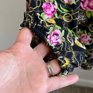 Betsey Johnson Floral Chain Print Blouson Top XL Pink Roses Boho Glam