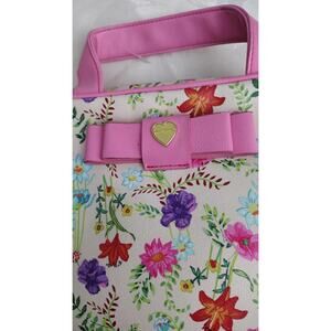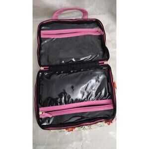 Betsey Johnson Floral Cosmetic Train Case Toiletry Bag Pink Bow Heart 13x10