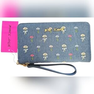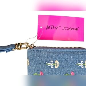 Betsey Johnson Floral Denim Wristlet, New With Tags
